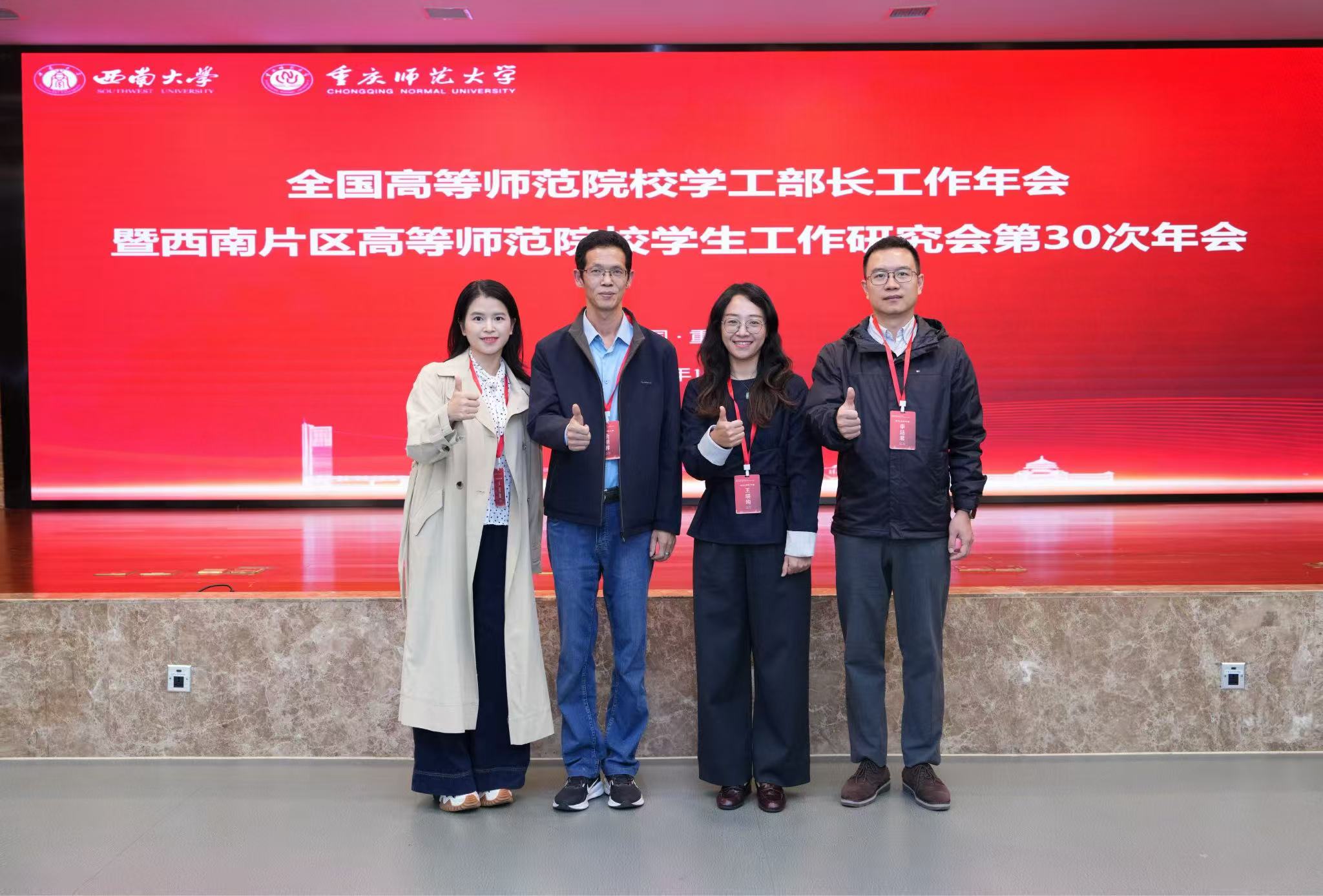 2025年10月23日至24日,全国高等师范院校学工部长工作年会在重庆师范大学成功举行。我校学生工作部部长俞明祥、教育学院党委副书记王晓均、外国语学院党委副书记季喆君、学...